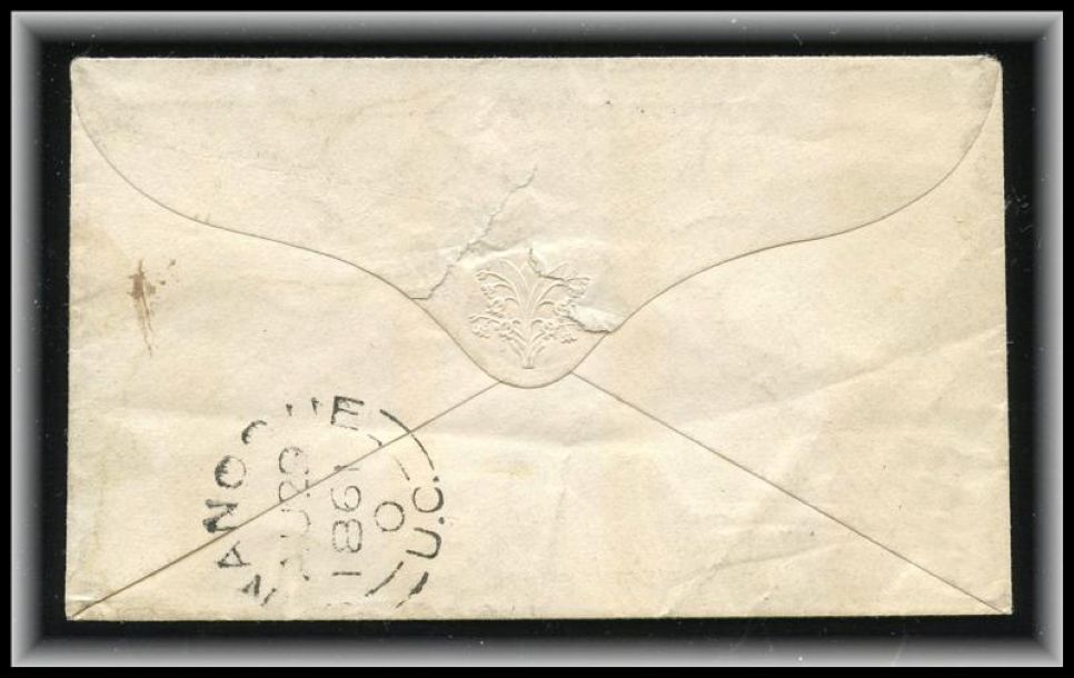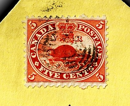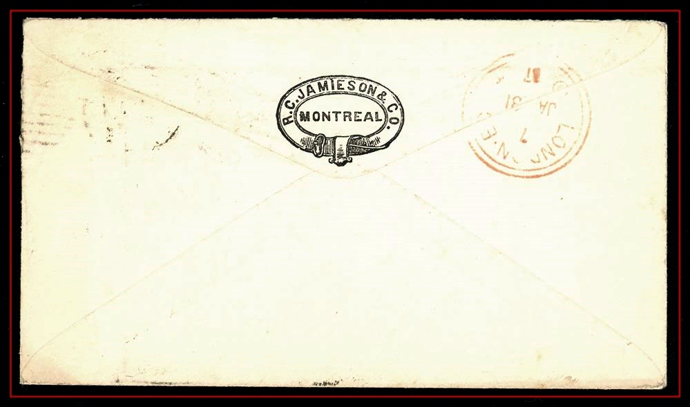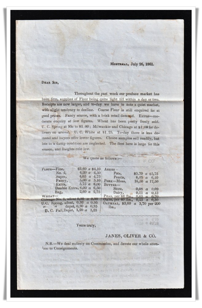 337 C o/doc 14b Deep Rose, on Janes & Oliver Produce circular, MONTREAL JULY26 1861 internal dated, #21 4 ring