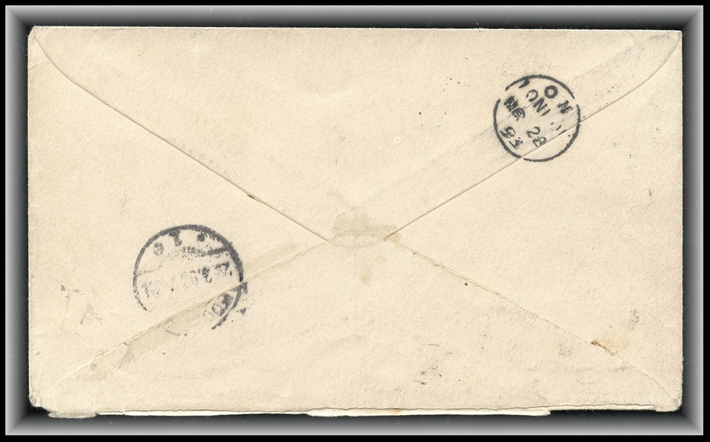 Advertising in green env, TORONTO FLAG NOV30/1897 FLAG E B/S Lawrencetown F