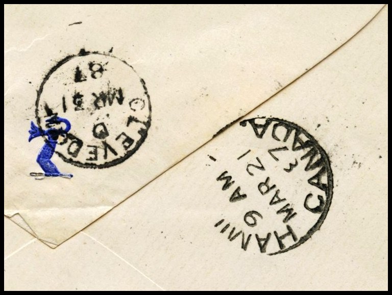 414 S o/CVR 38 fancy leaf like cork, B/S HAMILTON FE11/80 CANADA , Mary Port FE26/80 England