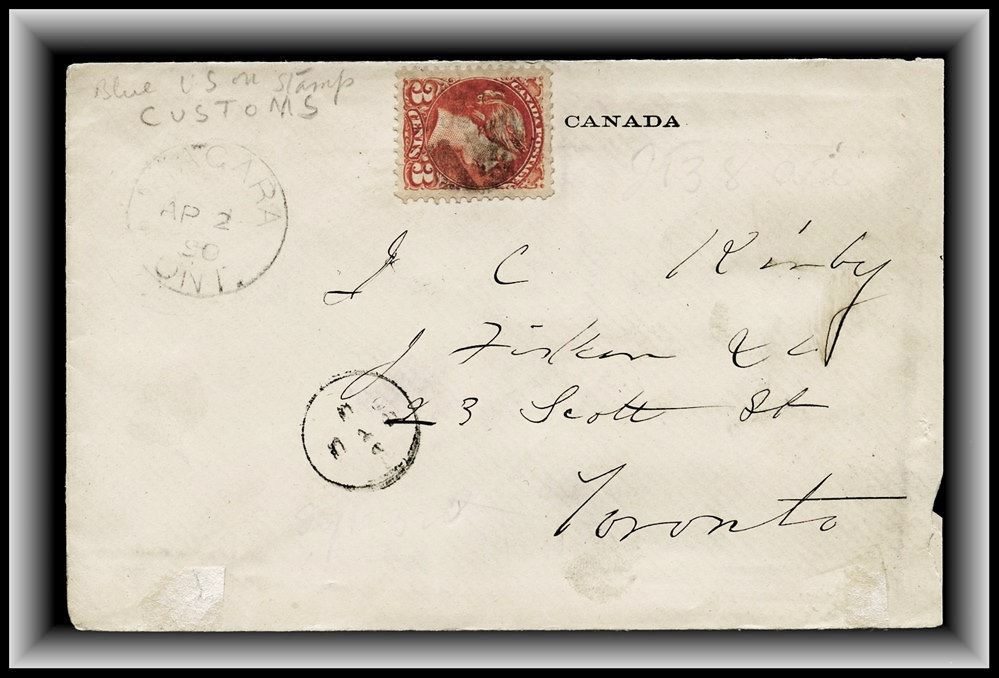 446 S o/CVR 41i NIAGARA AP2/90 ONT on CUSTOMS CANADA envelope, transit cancel, B/S Toronto