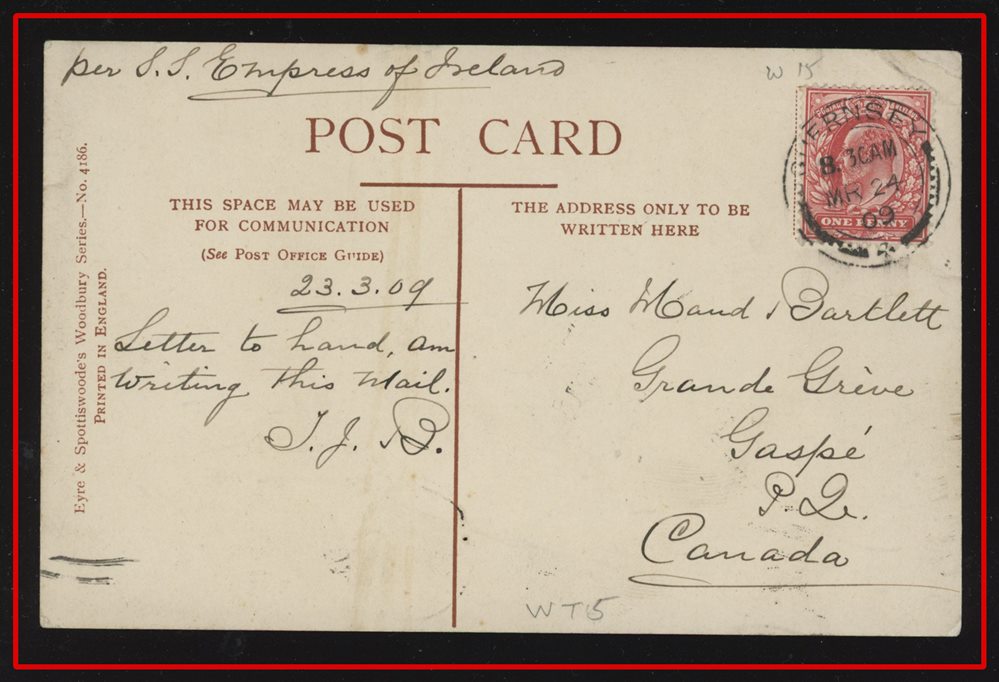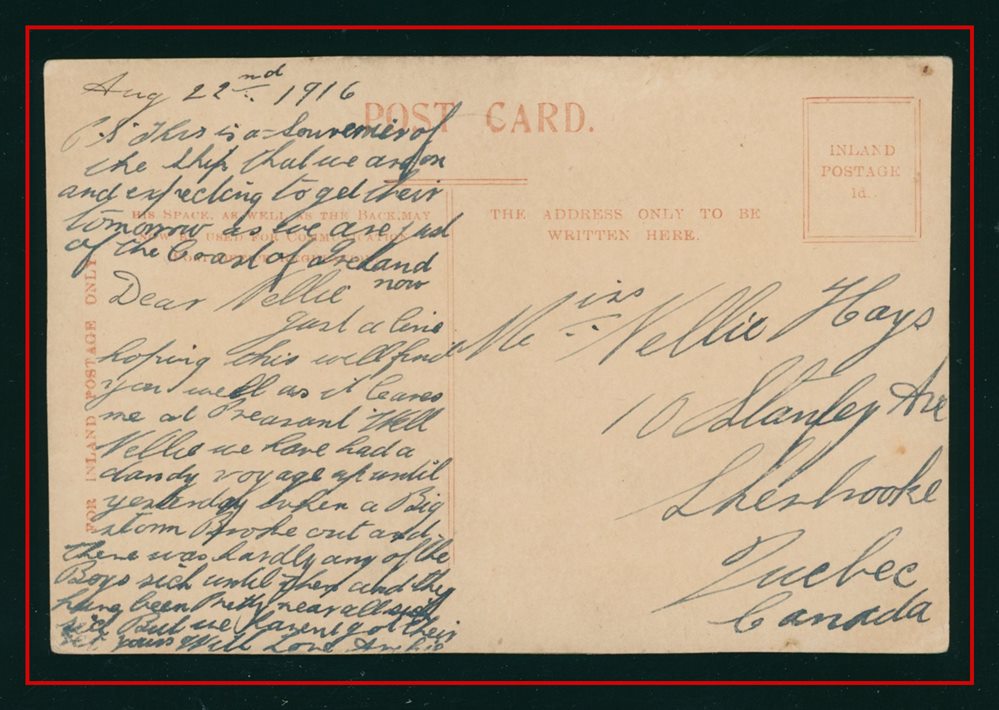 5 1/2" x 3 1/2" with finalized Montreal Import Co. PC (used 1907). VF