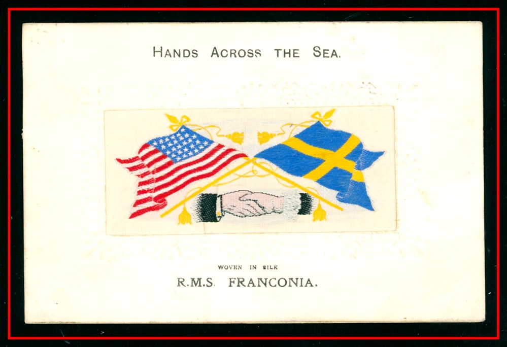 4 1/2" x 3 !/3" in red white and blue. Beautiful printed item. VF