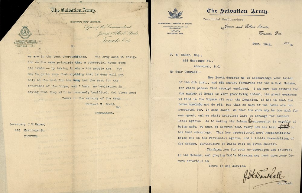 10 S o/DOC SALVATION ARMY 1894/5 Territorial Offices Letter,Receipt,Song Bklt,Balance Sheet