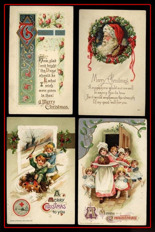 9 P */PC PATRIOTIC OLD GLORY + PATRIOTIC DRUM in early foldout Xmas Card,Outstanding item