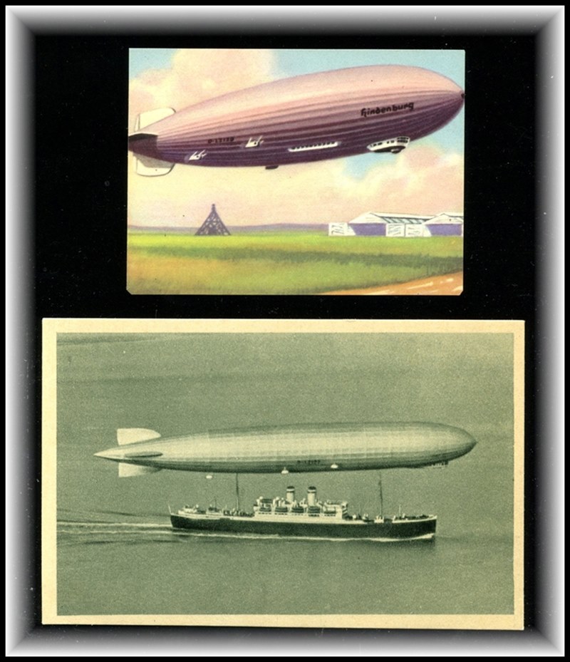 1 S *PHOTO GRAF ZEPPELIN flying over ship at sea (Echte Wagner card #3) and Hindenburg near