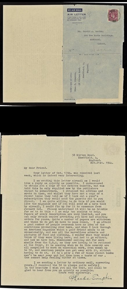 Packet,VIA S.S.Moravian,Liverpool arrival. F-VF