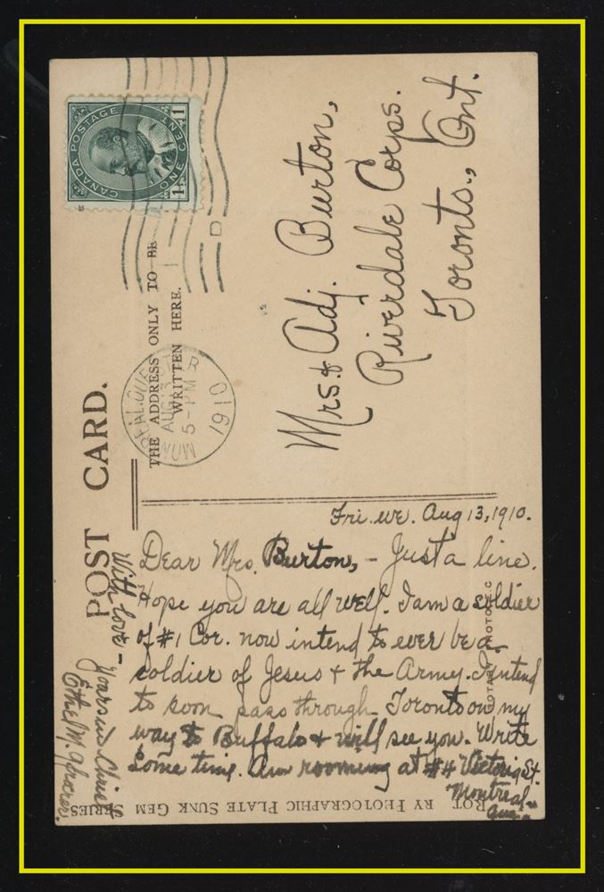 13 P o/PC SALVATION ARMY 'General Booth' Real Photo PC used Montreal Aug 1910.Scarce.VF