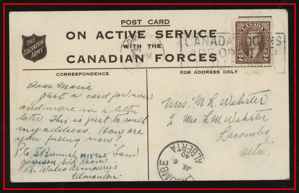 26 P o/PC SALVATION ARMY A S.A.Mobile Canteen with the Cdn Somewhere Overseas,Lacombe Jul