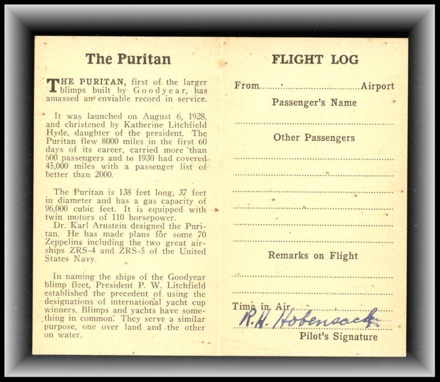 2 S oDOCU Goodyear - Zeppelin Corp., Akron Ohio - Puritan - Passenger log book, pilot