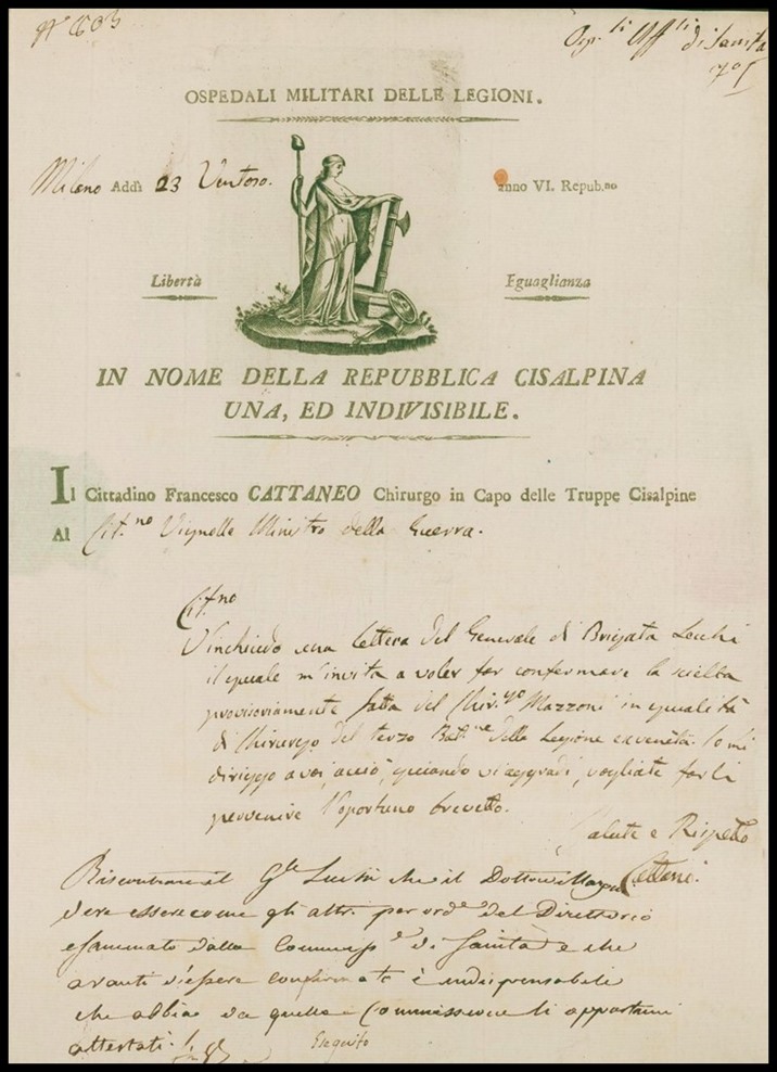 33 S o/DOC 1798 PORTO-FREE Letter from Army Surgeon General of The Cisalpine Republic to