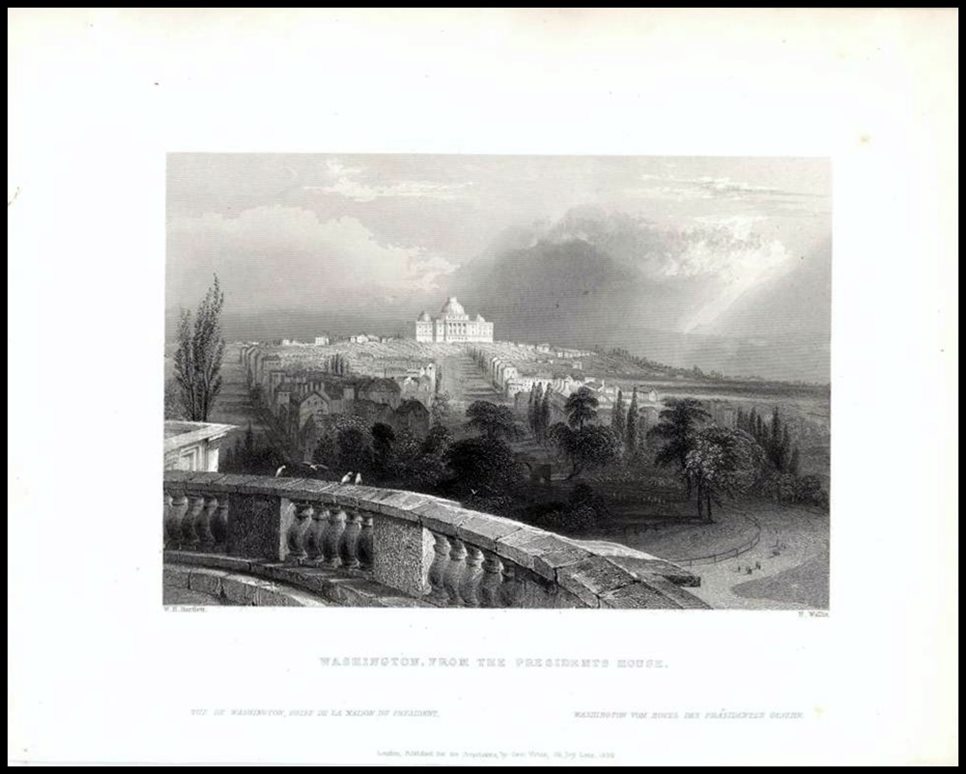 36 S */ENGR 1839 Washington from the President House by WM.Bartlett 8" x 10" Lovely. VF
