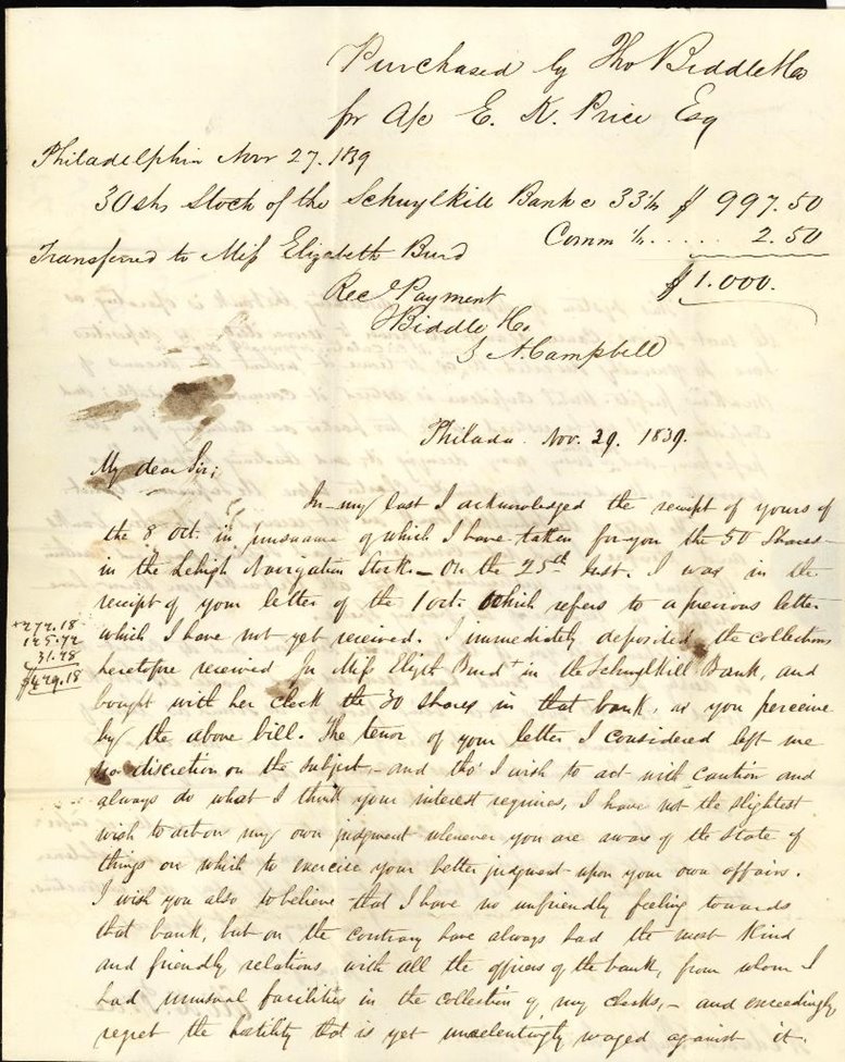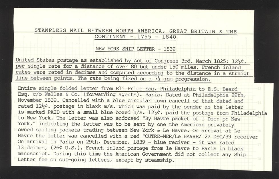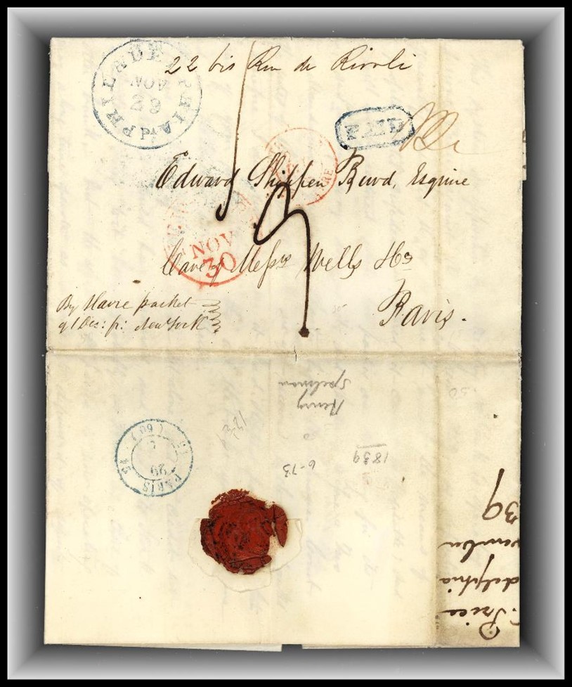 37 P o/CVR 1839 Philadelphia to Paris PHILADELPHIA 29Th Nov 1839,rated 12 1/2c PAID H/S in