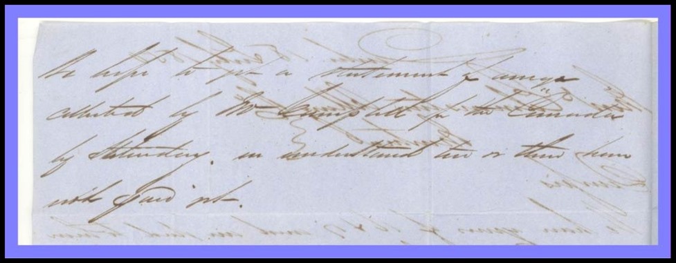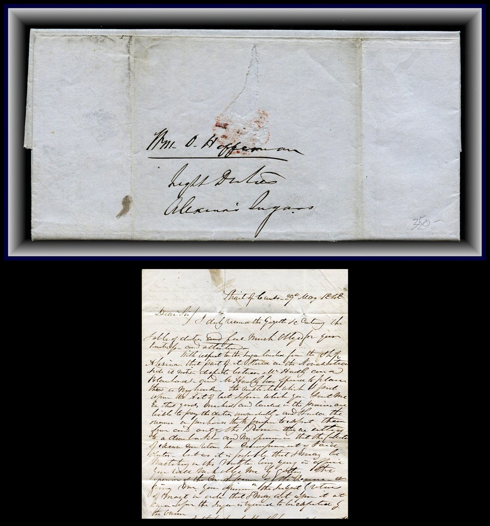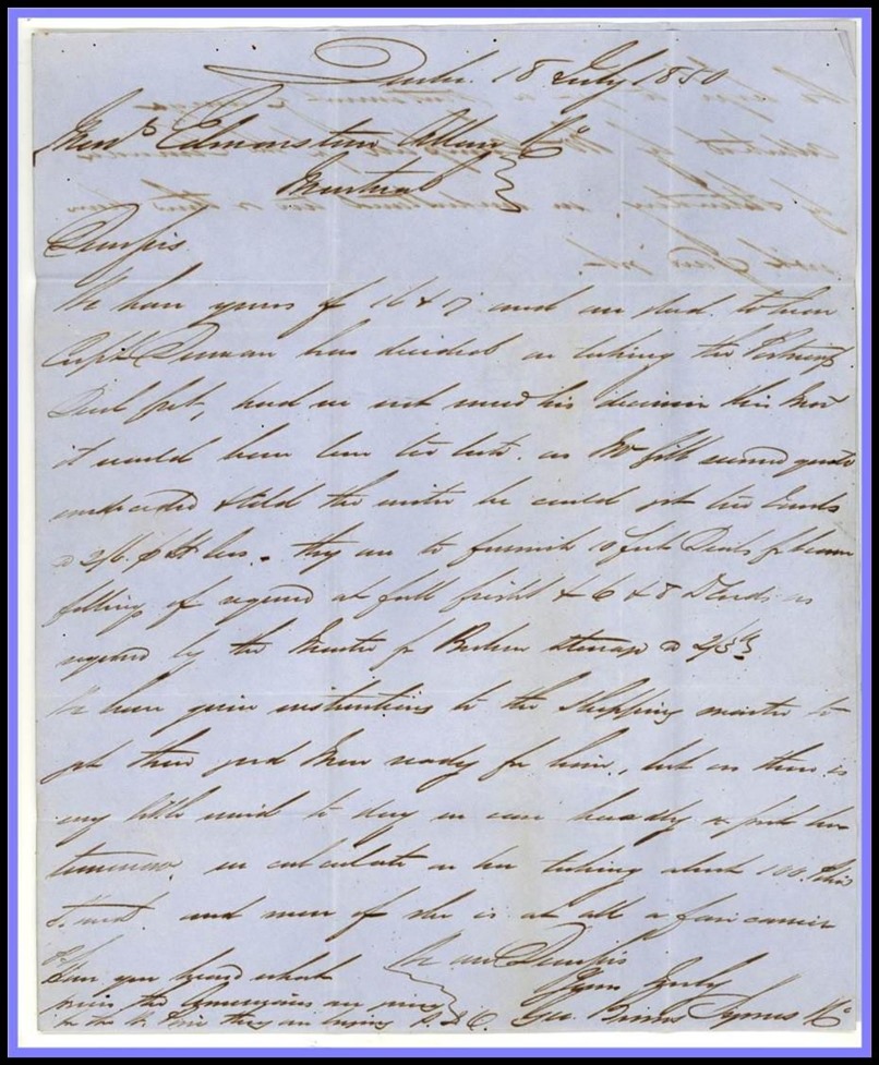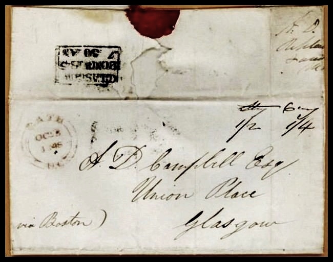 402 P oCVR 1854 stampless letter talks of steamer 'GLENCAIRN and Capt Crawford, rated '3',