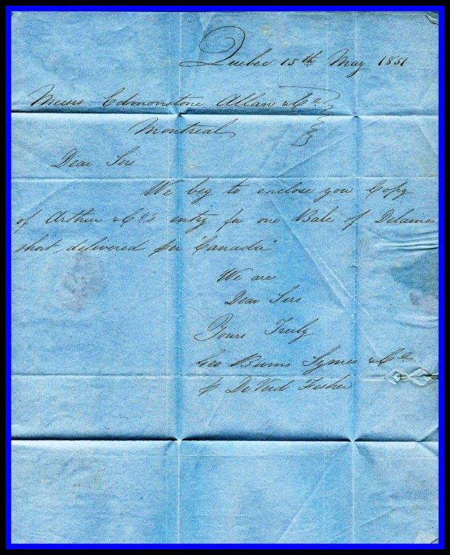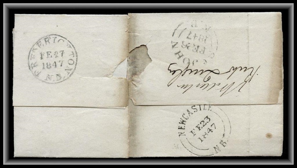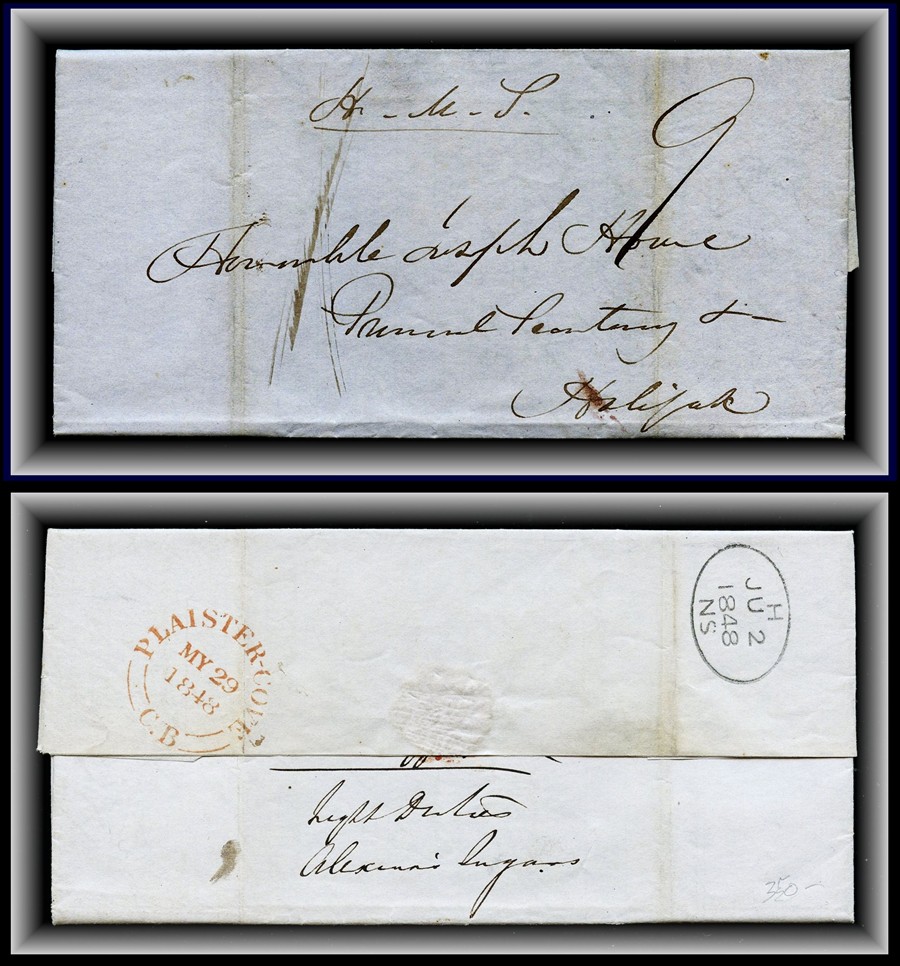 401 P o/CVR 1854 Stampless cvr + interesting enclosure from James Stewart written at Quebec