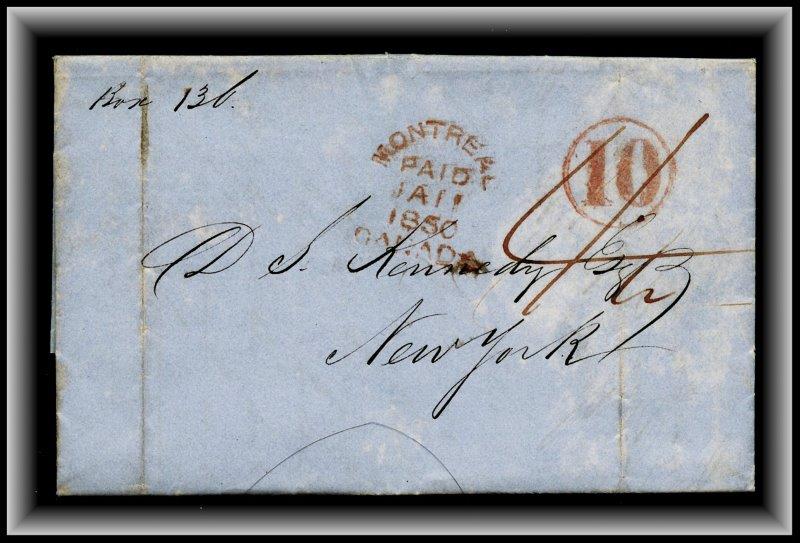 400 S o/CVR 1853 Stampless letter with enclosure on Estate,MONTREAL MR 29 1853 LC in org red