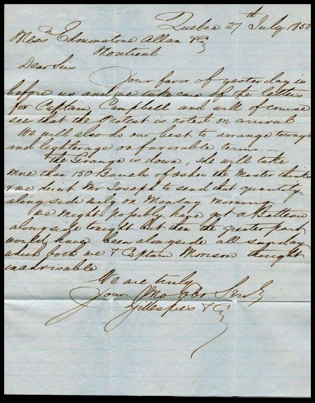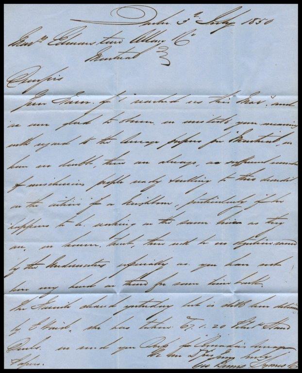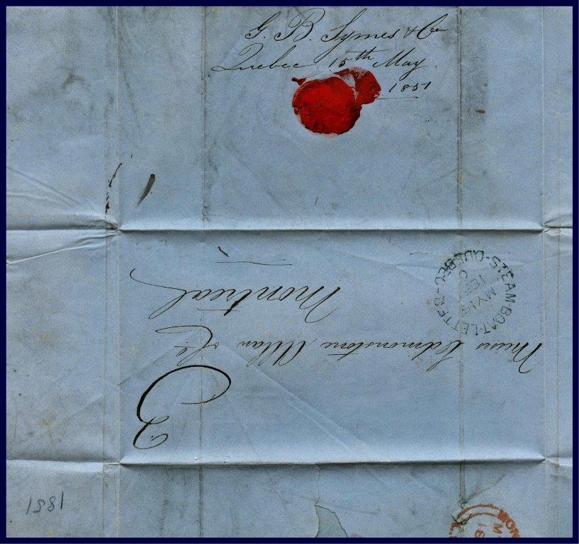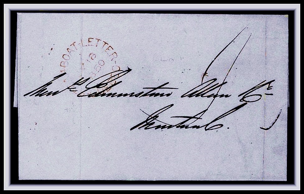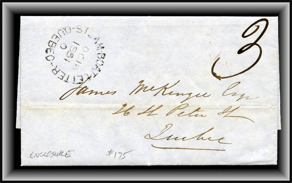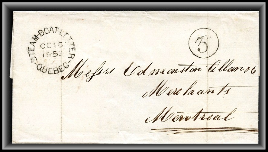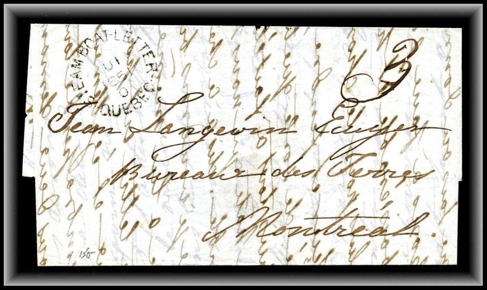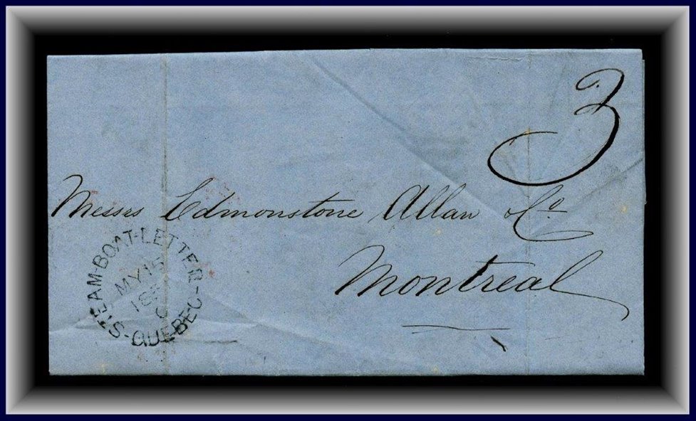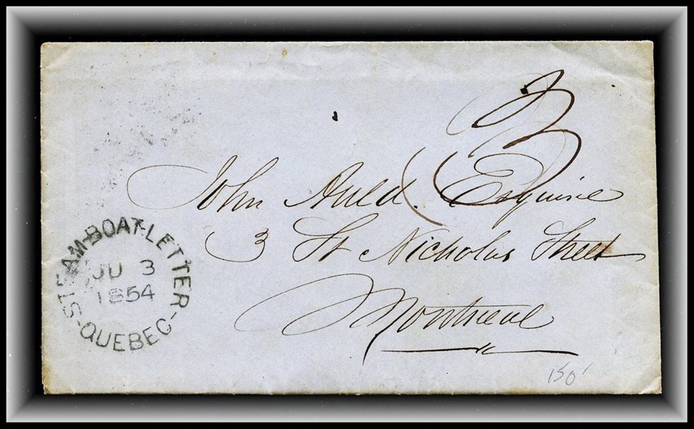 rated '3' STEAM BOAT LETTER QUEBEC JU3/1854 super strike B/s Montreal.A Gem