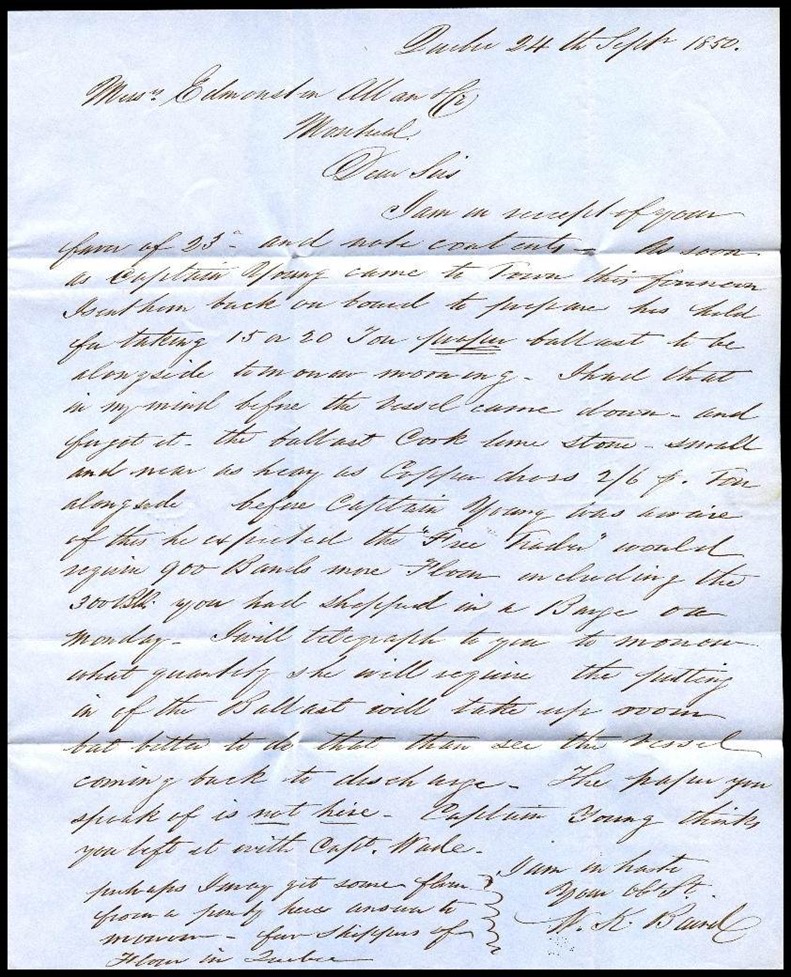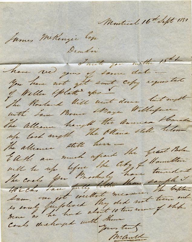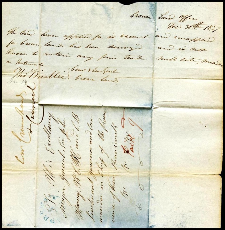 409 P oCVR 1857 stampless letter & enclosure from Thomas Baillie DEC 30 1857 & signed,
