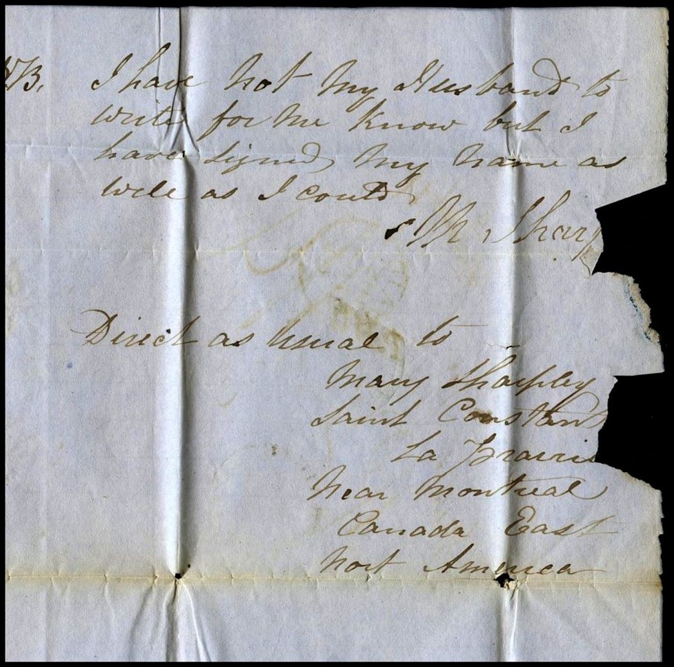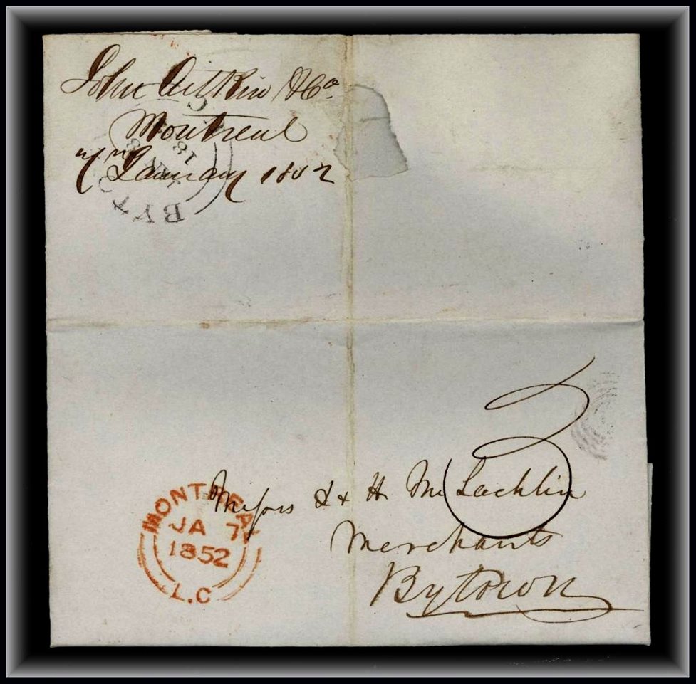 cir(dbl rated). B/S MONTREAL DE 9 1852 LC in red to John Auld. F-VF