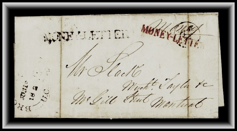 394 P o/CVR 1852 Stampless + enclosure,Lrg "MONEY LETTER" in black,red "MONEY LETTER",