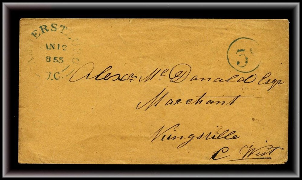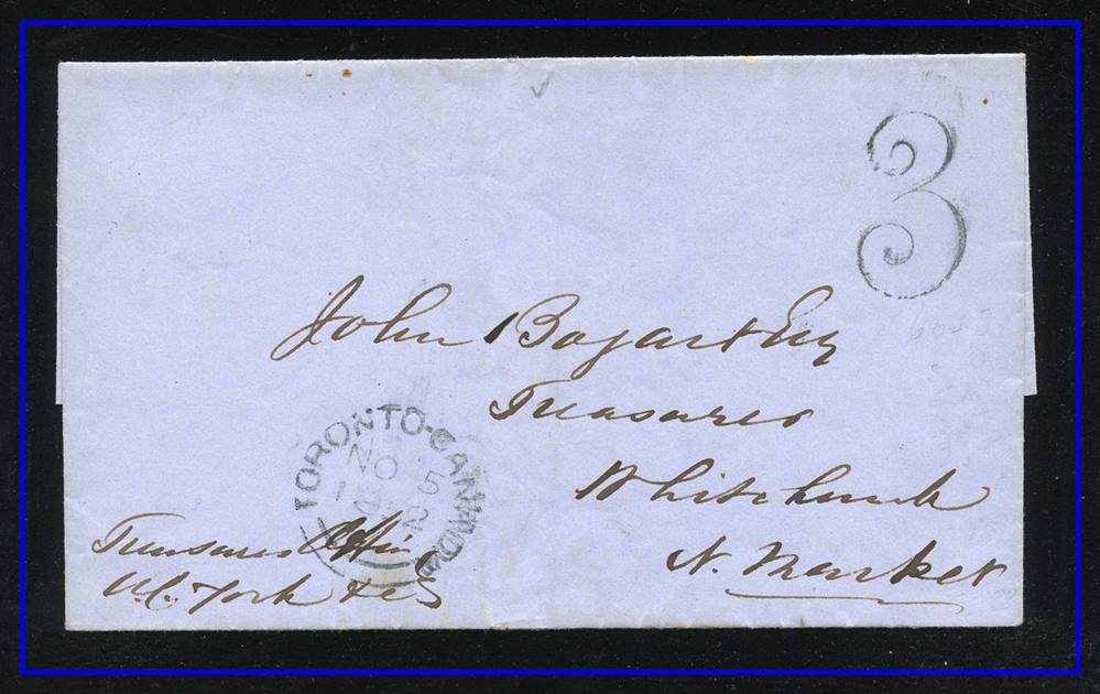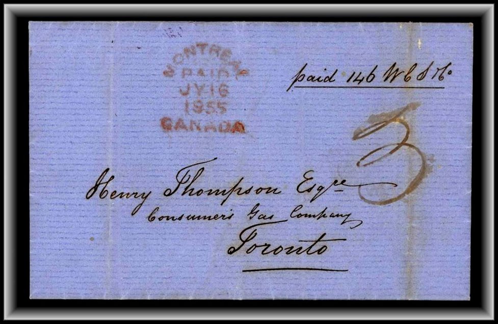JY 16 1855 CANADA", '3' manuscript. B/S Lrg TORONTO. VF