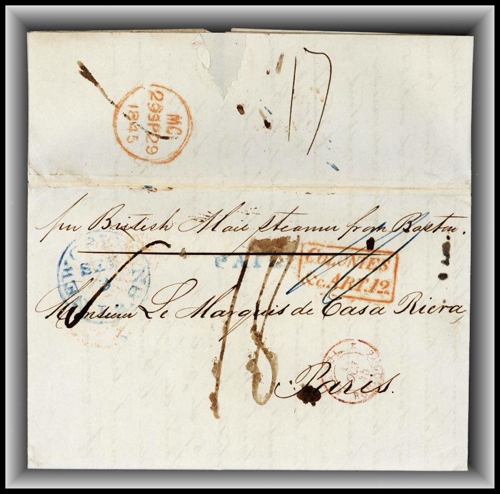 Blue,VIA 'By Havre Packet' New York, red 'OUTRE-MER LE HAVRE/29, 13 DEIMES