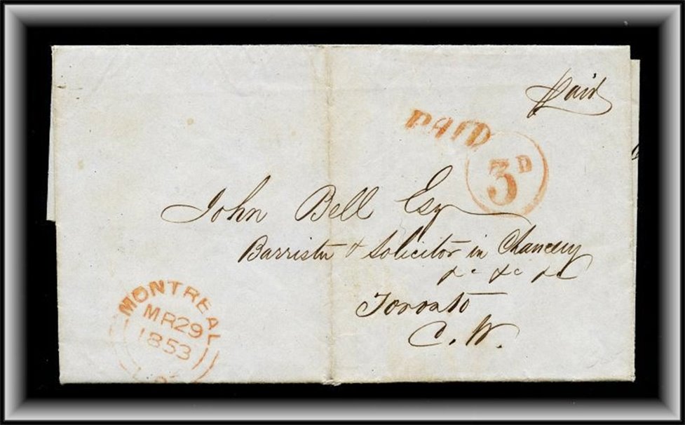 PAID + 3D in cir to John Bell Lawyer. B/S TORONTO CANADA. VF