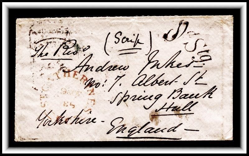 tombstone PKT. LETTER LIVERPOOL DE15 A/1856/D, Hull De 1856 A, arrival to Rev.A