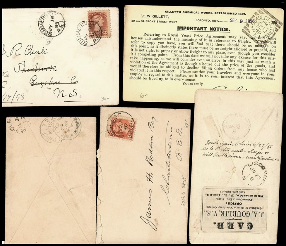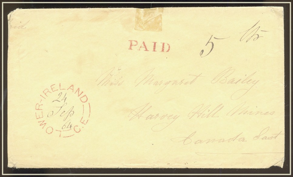 PAID 5 H/S in red, B/S Somerset,Leeds,Quebec,Harvey Hill Mines CE. F-VF