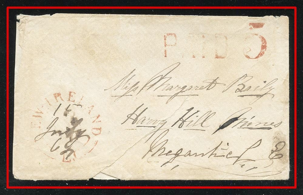 417 S o/CVR 1864 Stampless Cvr LOWER IRELAND C.E in red manuscript '24 Sep/64',Red PAID H/S,