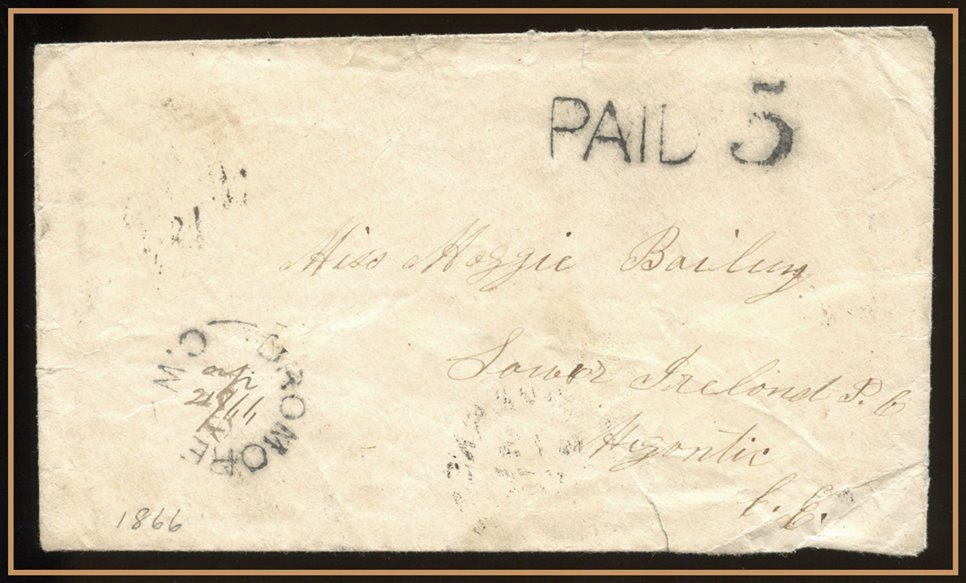 422 P o/CVR 1867 Stampless Cvr ROBINSON MR 23/67 L.C. PAID H/S in black, 12 1/2 Manuscript