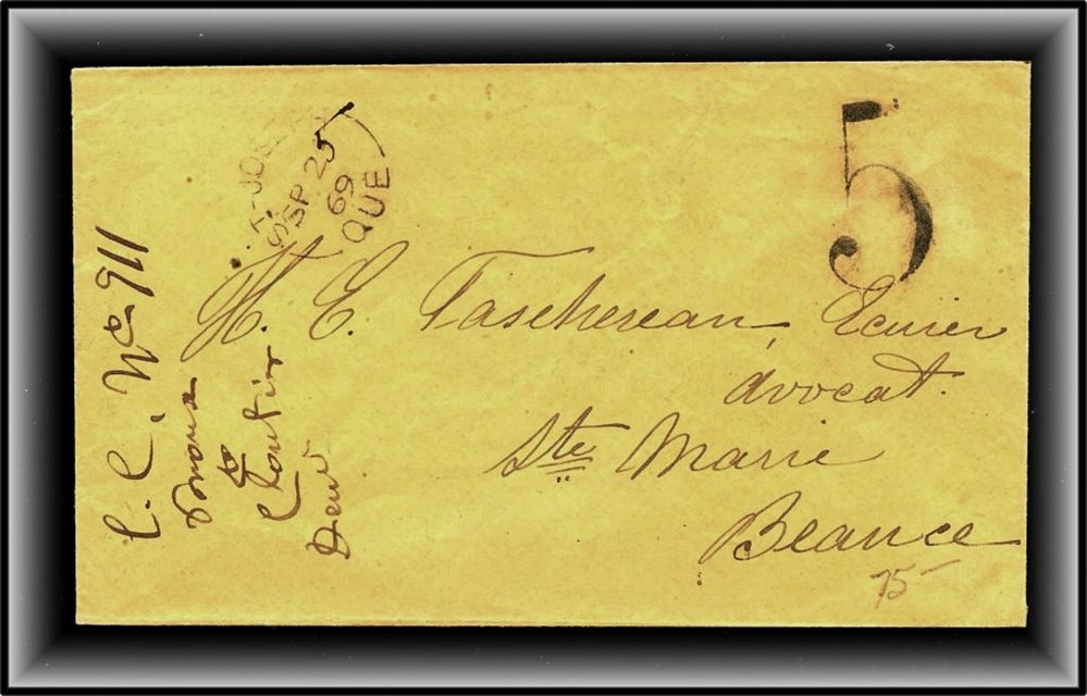 425 P o/CVR 1869 Stampless ST. JOSEPH SP25/69 QUE. spl.cir.,rated '5' H/S B/S La Beauce