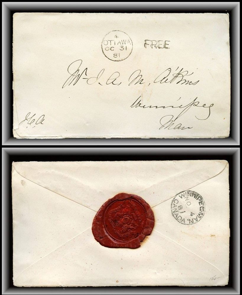 427 S o/CVR 1881 MINISTER OF INLAND REVENUE large wax seal (complete strike) J.C.A. initials