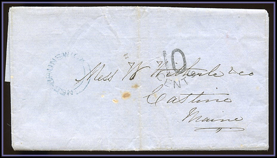 1859 LC in black, 6 manu.,10 in blue to New Hampshire. Neatly written-up. VF