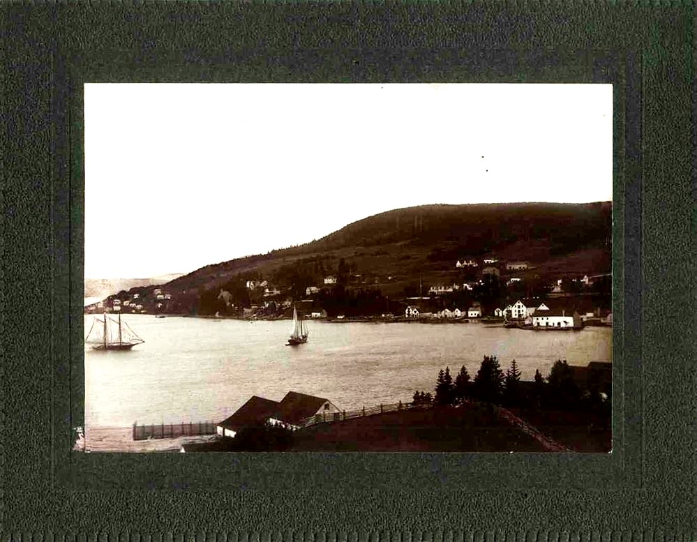 5 S PHOTO QUEBEC GASPE BAY BASIN on thick green board, showing excellent detail of village