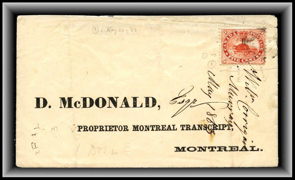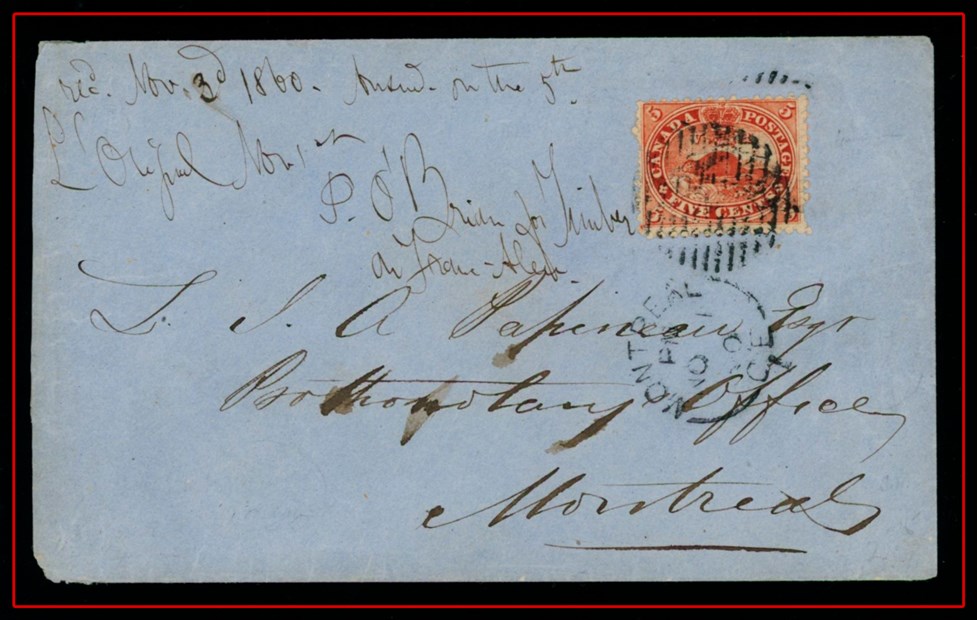346 C o/CVR 15c 1860 cover to the famous L.G.A.PAPINEAU Esq. MONTREAL PM NO1/60 CE duplex