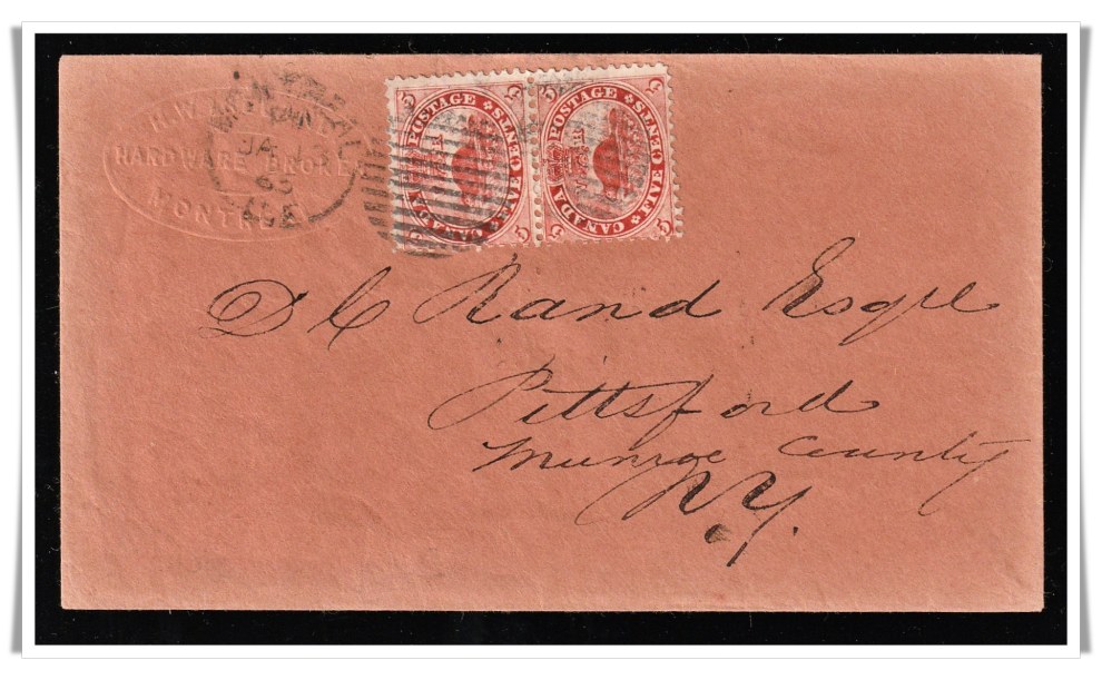Montreal Jan13 1865 C.E. duplex to Pittsford NY. VF