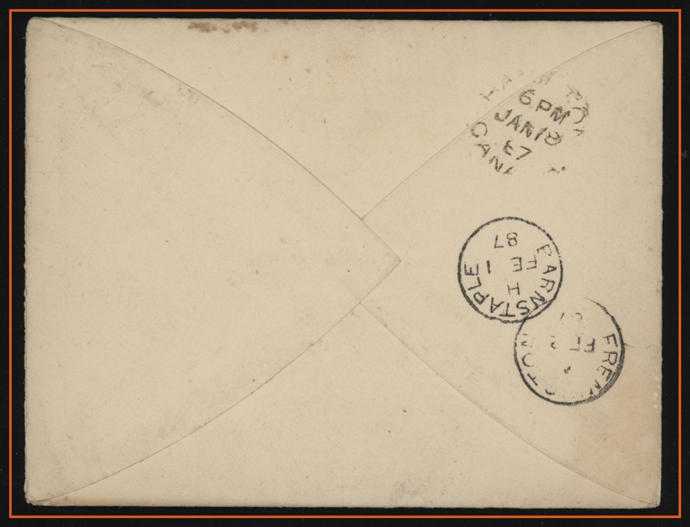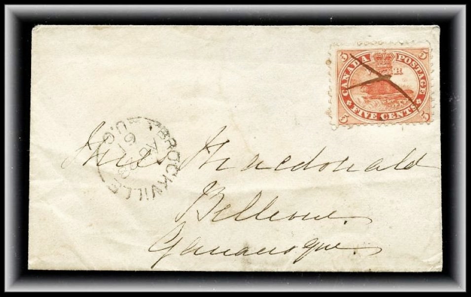 cancl,addressed to BELLEVUE (Macdonald's old residence),B/S Gananoque AU29/1861-