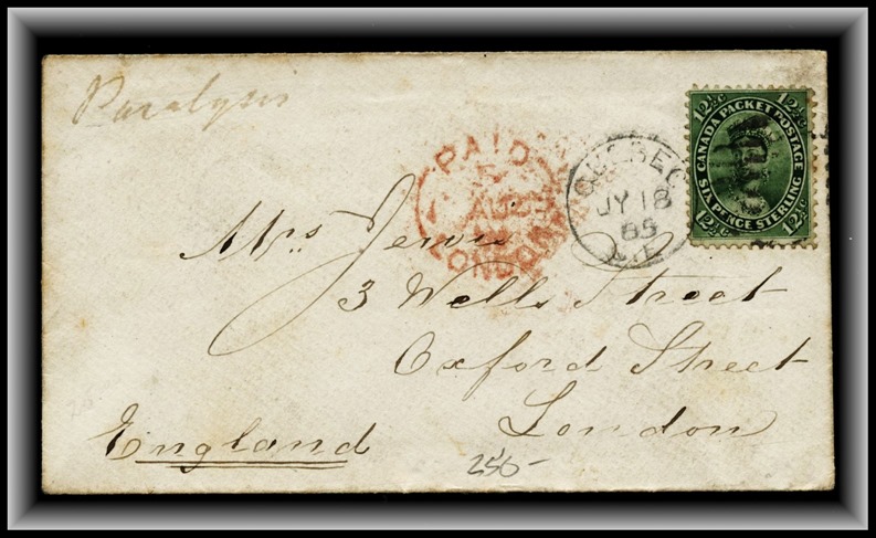347 P o/CVR 18 (12 x 11 1/2) Green, QUEBEC JY18/65 C.E. duplex, neat PAID S AU2 65 LONDON
