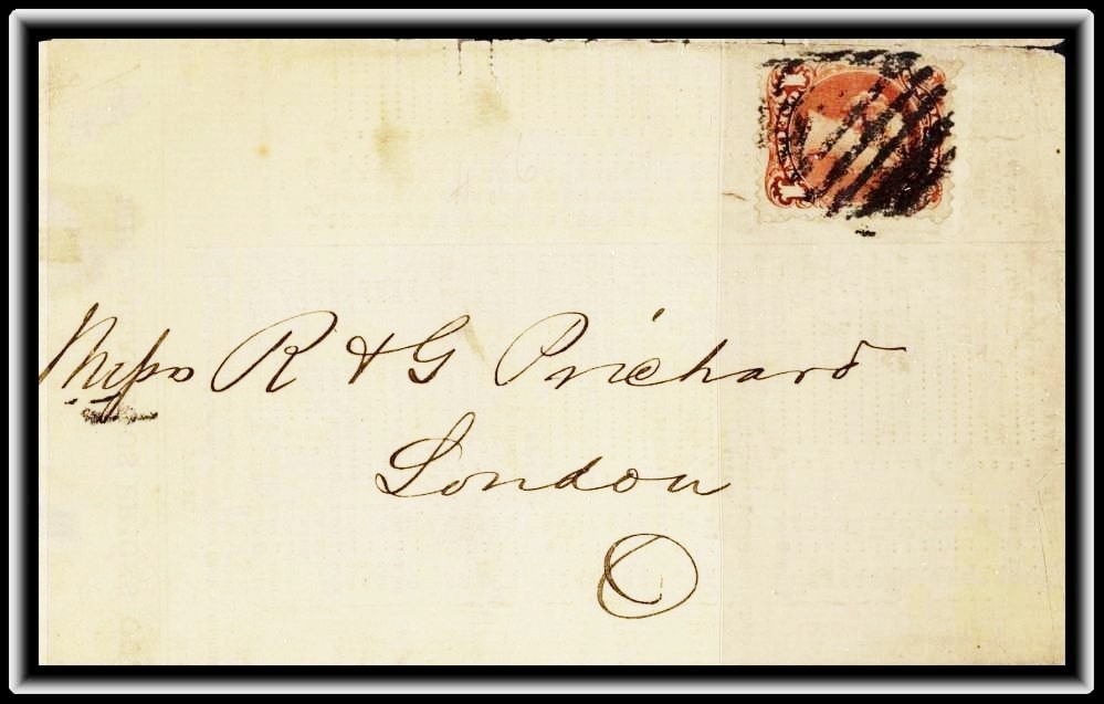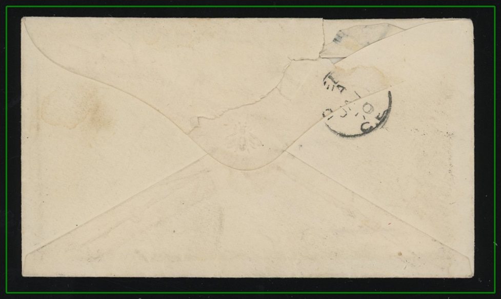 337 C o/doc 14b Deep Rose, on Janes & Oliver Produce circular, MONTREAL JULY26 1861 internal dated, #21 4 ring