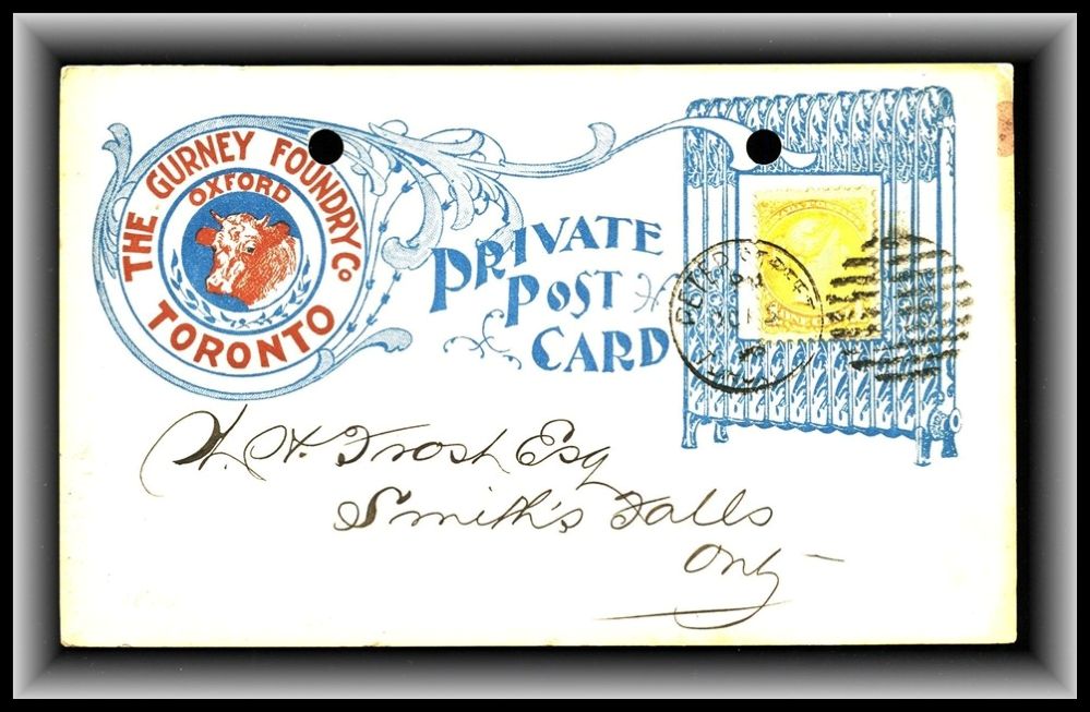 361 P o/PC 35i THE GURNEY FOUNDRY CO.TORONTO advert PC with Bull and Iron Radiator in red