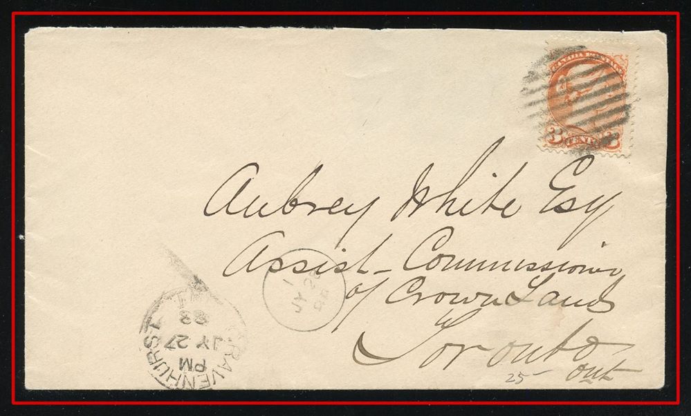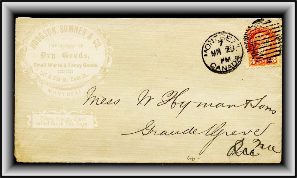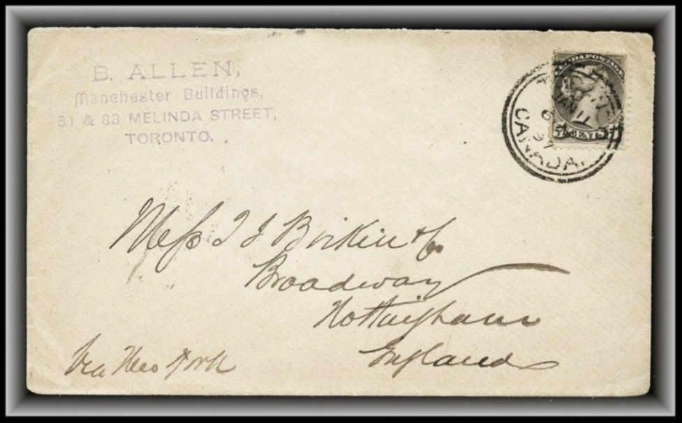 Advertising in green env, TORONTO FLAG NOV30/1897 FLAG E B/S Lawrencetown F