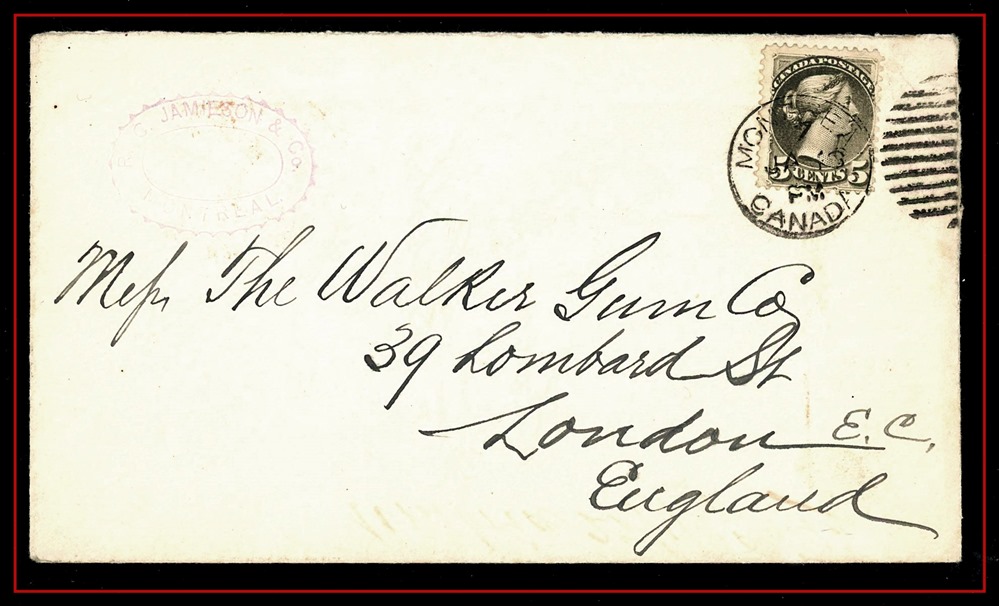 366 S o/CVR 36i Massive Jumbo+51 on THE BUSHNELL CO. crn card, MONTREAL FLAG AU23/12/01/1897