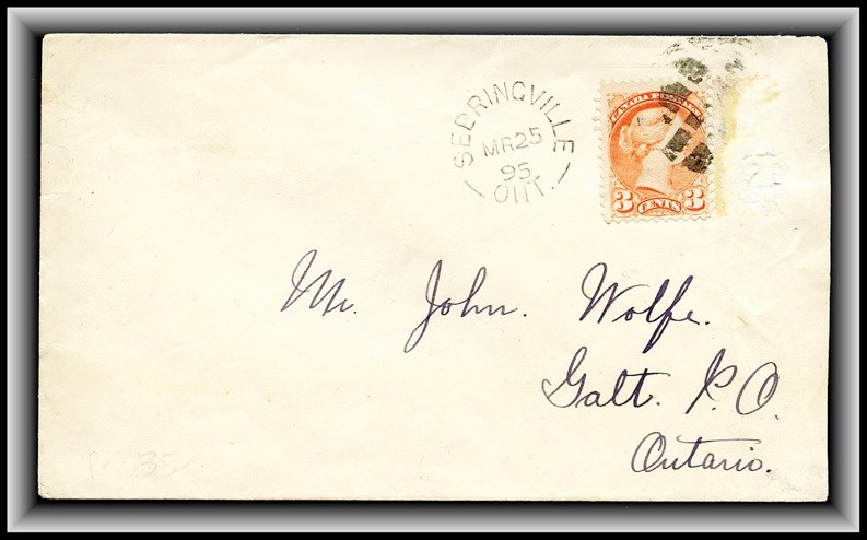 423 S oCVR 41 SEBRINGVILLE MR 25/95 ONT spl.cir. + fancy cancel, B/S Galt. Pretty. VF