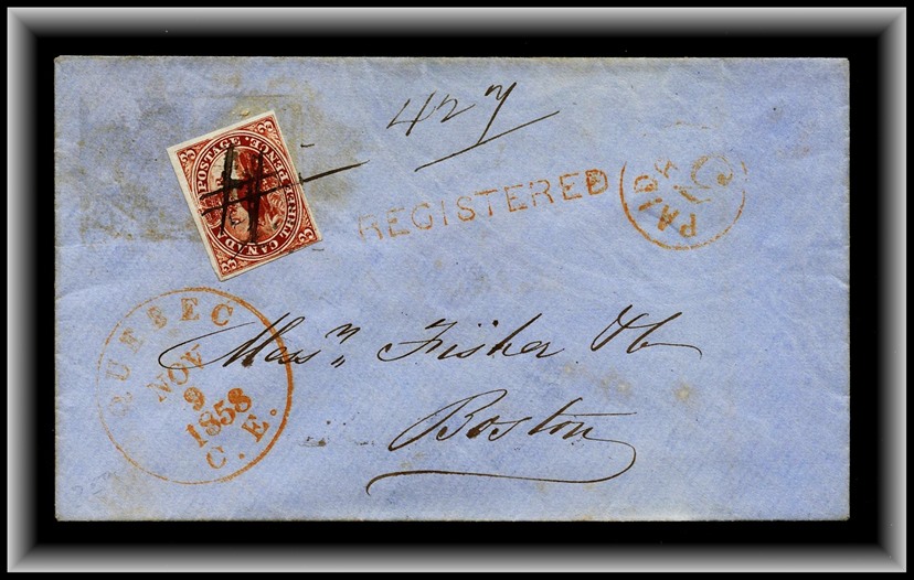 430 P o/CVR 4 Nice margin pen cancel,may be tied(3D paid in cash) QUEBEC NOV 9 1858 C.E in