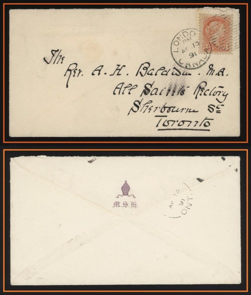 365 P o/CVR 36i (Massive Jumbo) Toronto MAY23/91 Canada 2 ring orb with ANGLICAN HAT with
