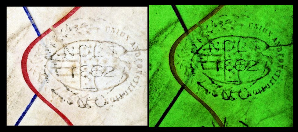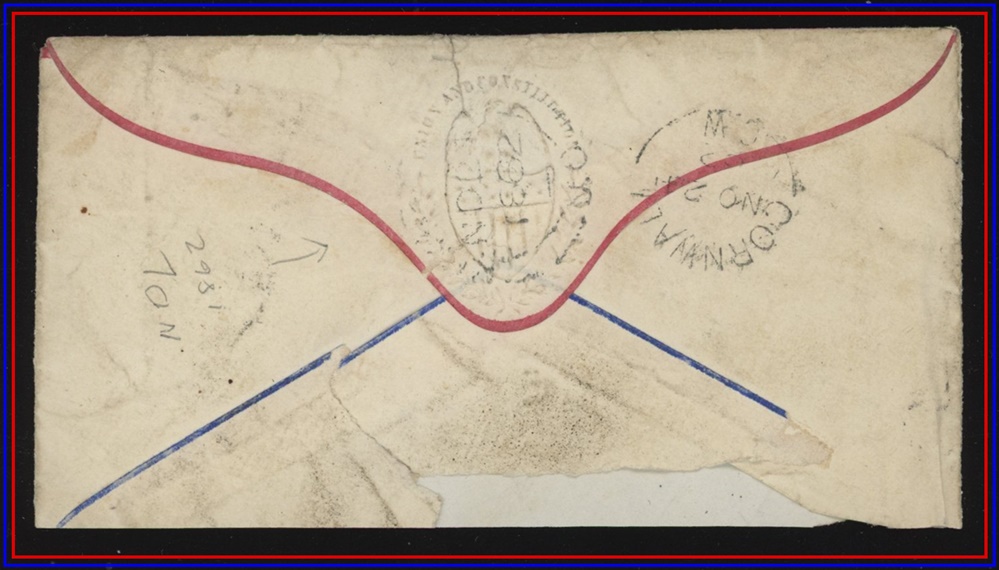 C.W on extremely unusual Civil War Patriotic envtrimmed in Red & Blue with