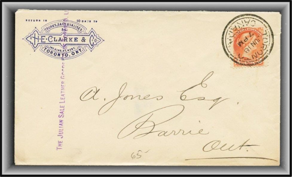 443 S o/CVR 41 H.E. CLARK + Co. with H/S ovpt JULIAN SALE LEATHER GOODS advertising in blue