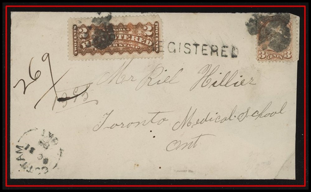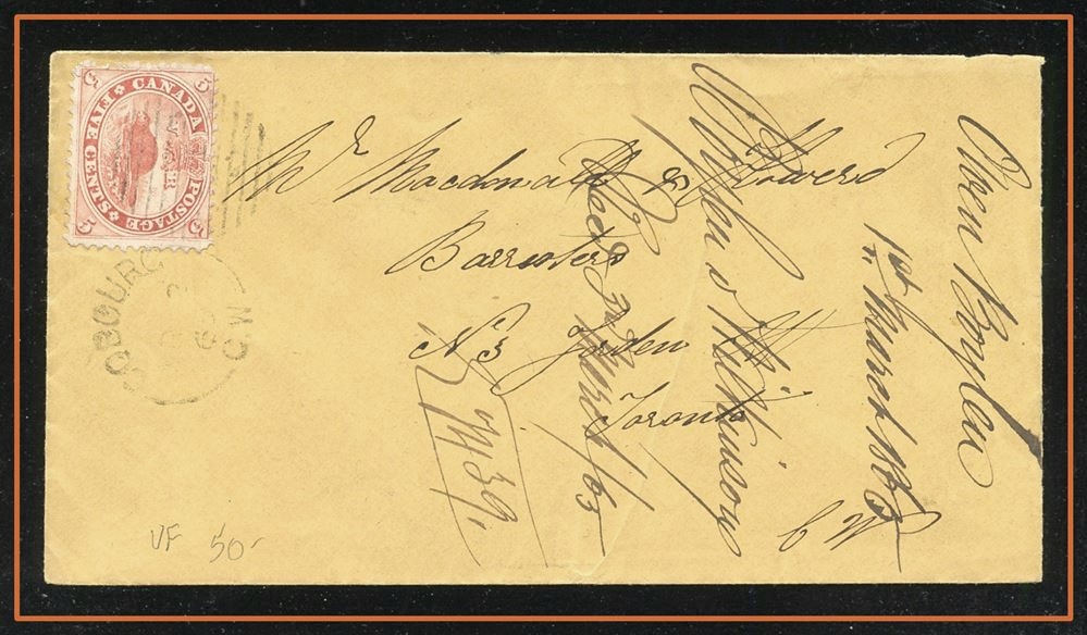 446 P o/CVR 15 (VF) GEORGEVILLE AP 1864 CW, plus 7-ring, B/S Toronto Ap27/64 CW to University