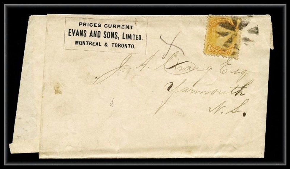 457 S o/CVR 35 Evans & Sons Prices Current Wrapper with pretty Fancy to Yarmouth N.S. VF