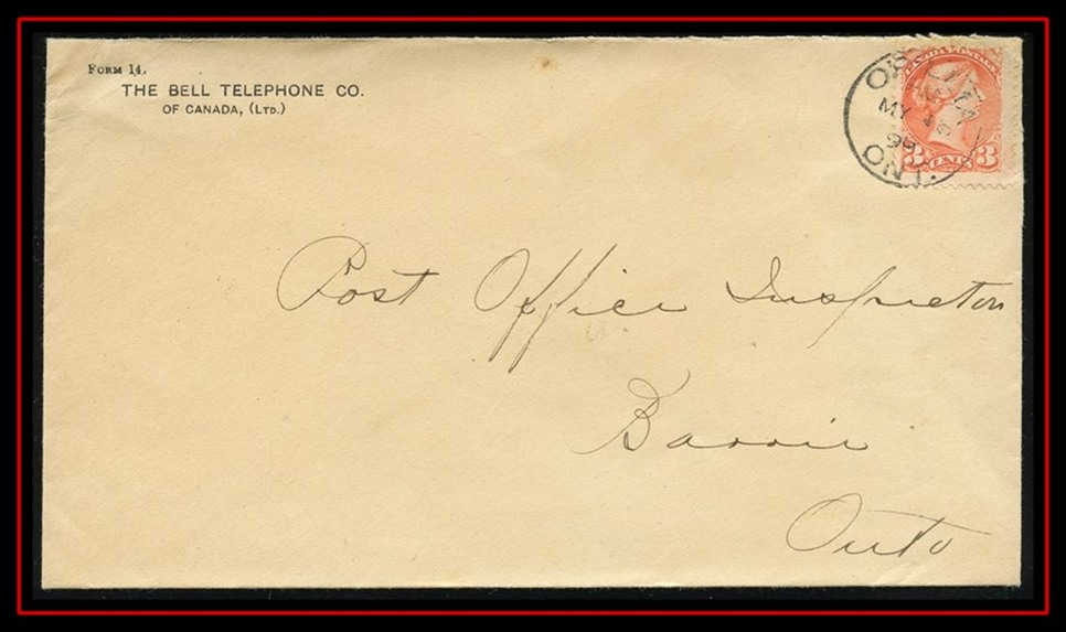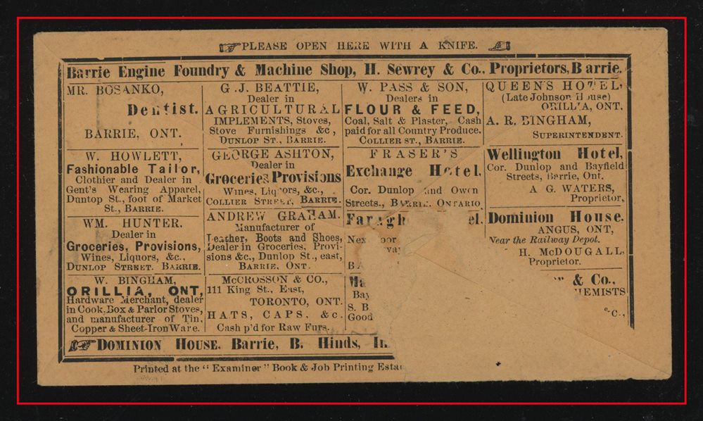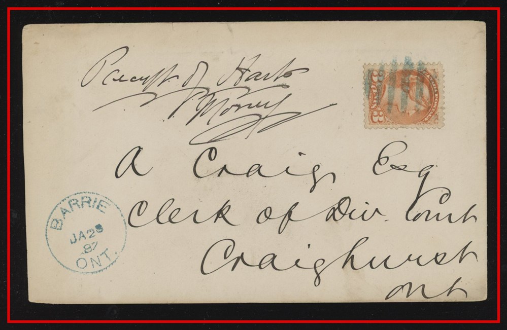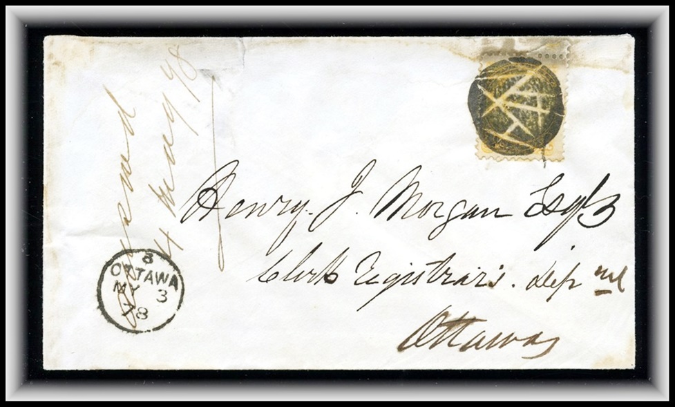 449 P o/CVR 15 PENETANQUISHENE UC with MY16 (186)7 in manscript,B/S Barrie, Ottawa AM MY 16
